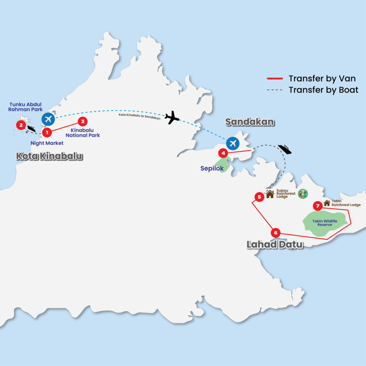 Depart by boat back to Kota Kinabalu in mid afternoon.